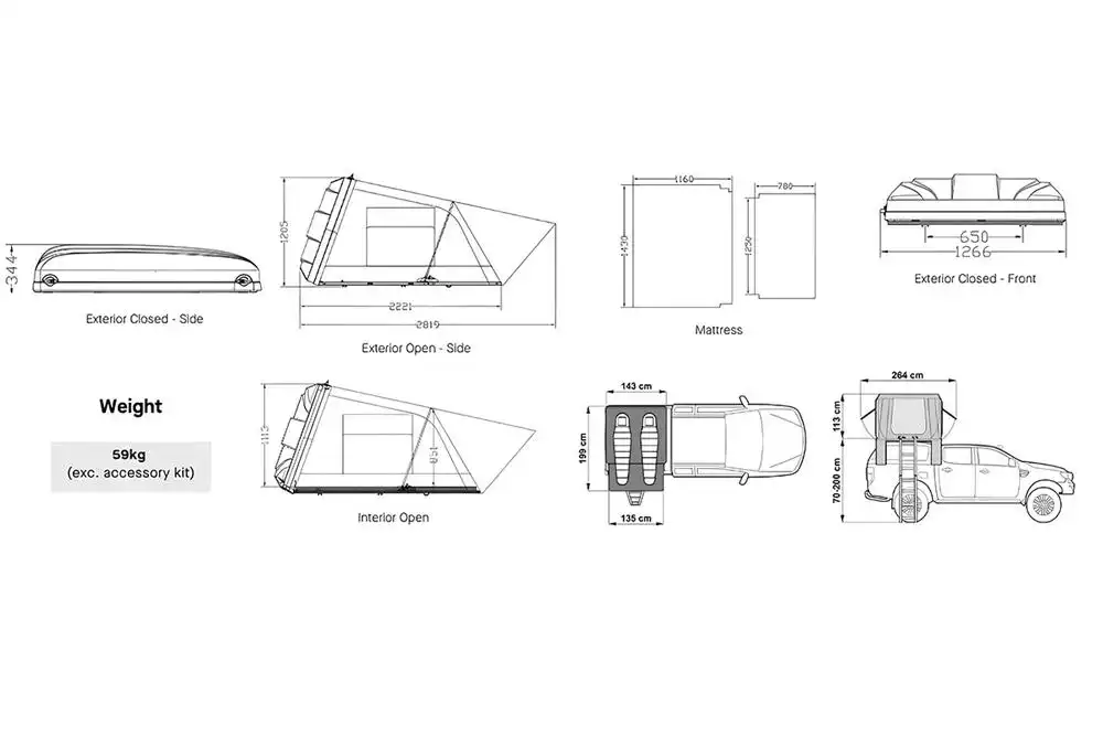 Esperance es una carpa de techo de cubierta rígida de perfil delgado, diseñada para ofrecer instalación rápida, comodidad y un diseño moderno para tus aventuras.